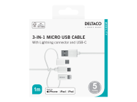 USB hann til Micro-USB type B, Lightning, 24 pin USB-C hann - 1 m - svart